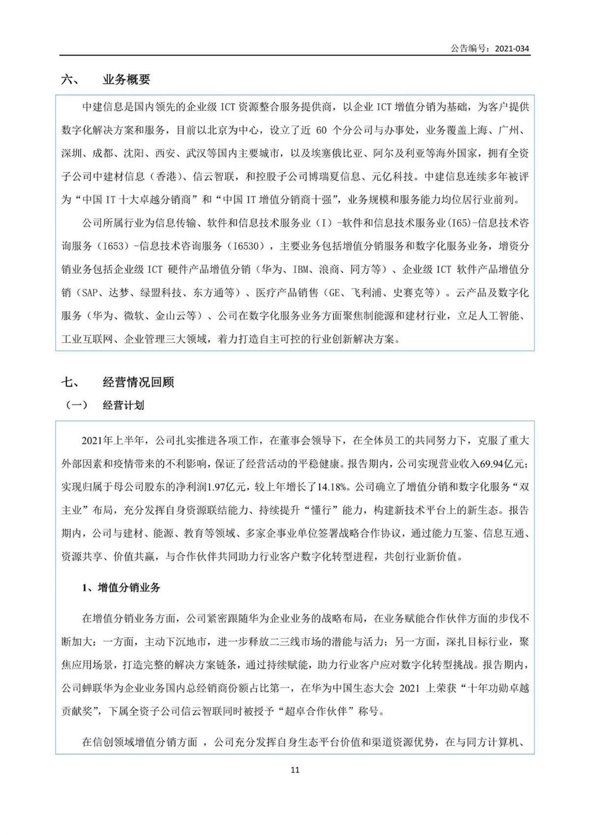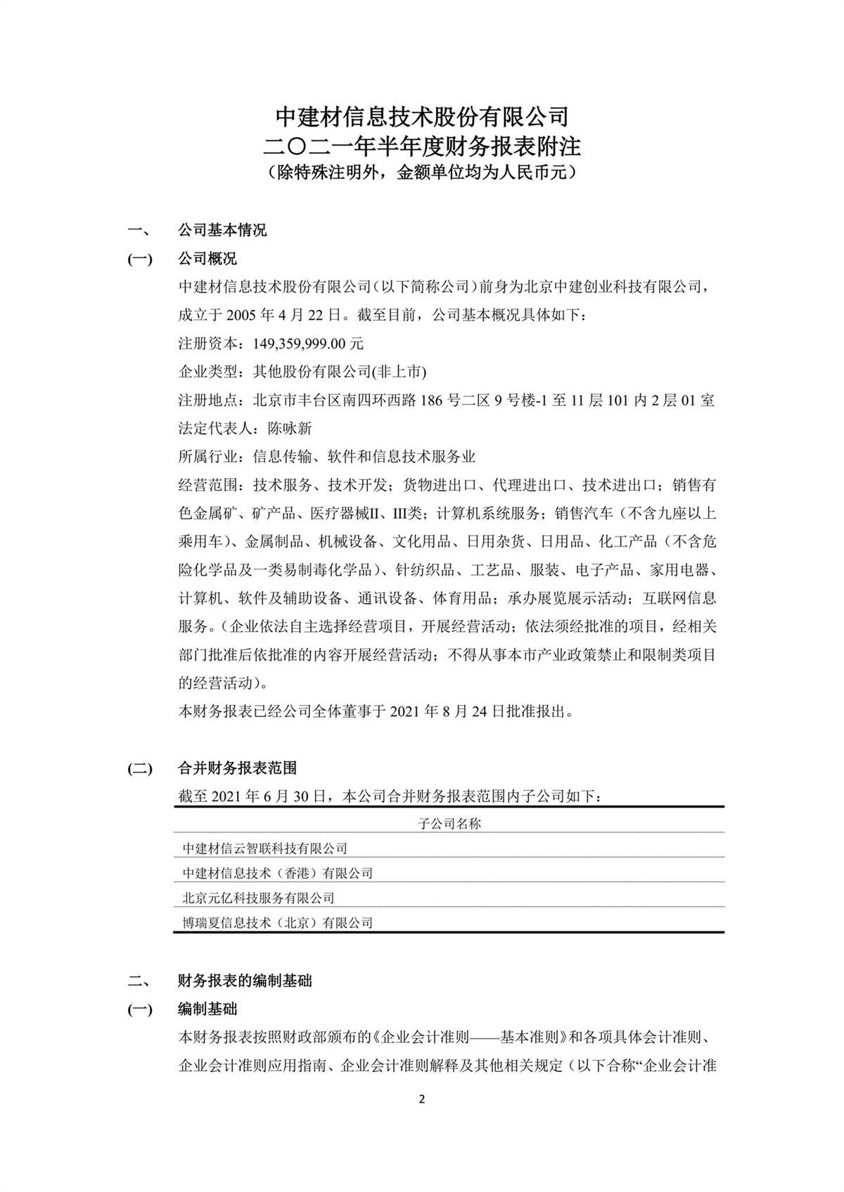 中建信息2021年半年度報告