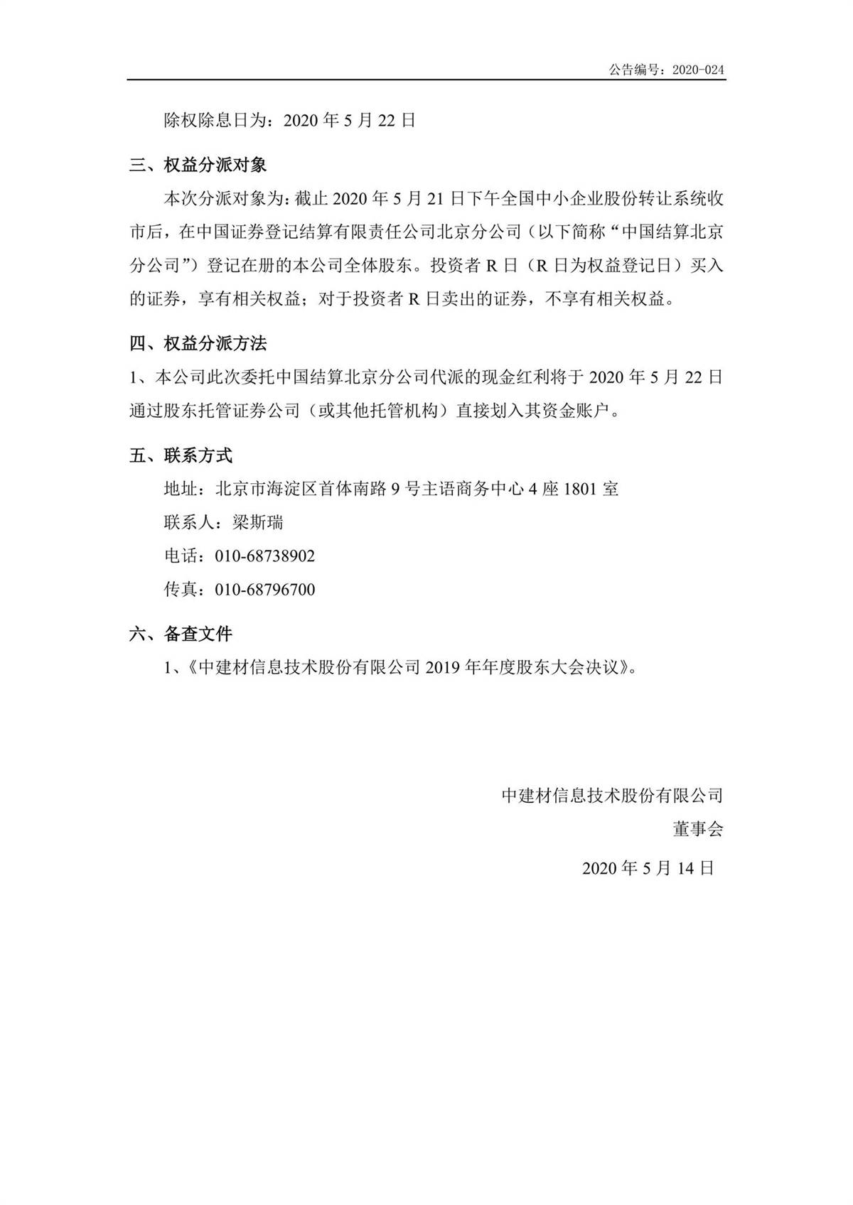 中建信息2019年年度權(quán)益分派實施公告