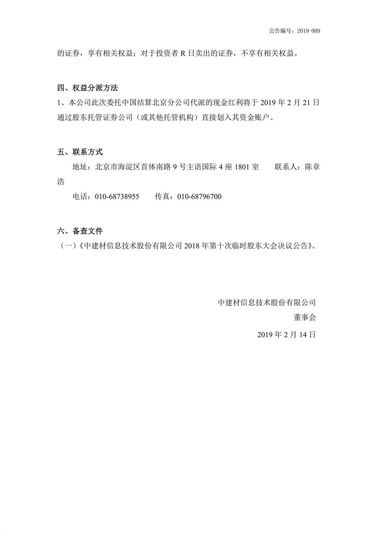 中建信息2018年第三季度權(quán)益分派實(shí)施公告